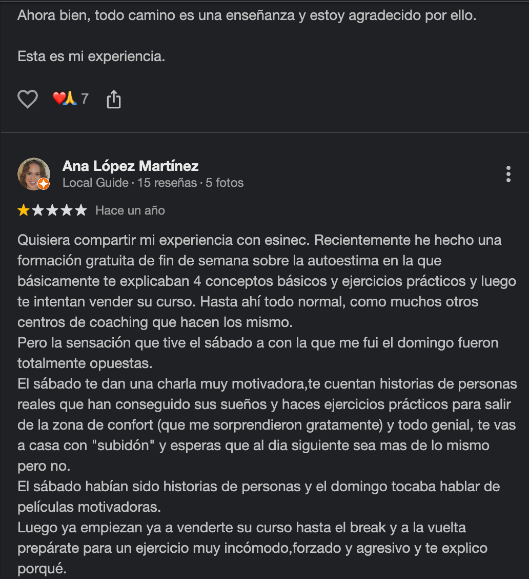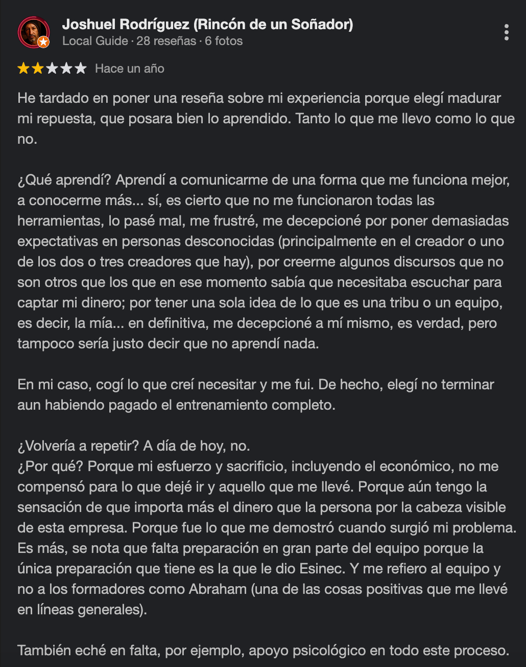 Sin embargo, no todas las experiencias relatadas por asistentes a sus formaciones coinciden con el relato de alto impacto y transformación prometido.