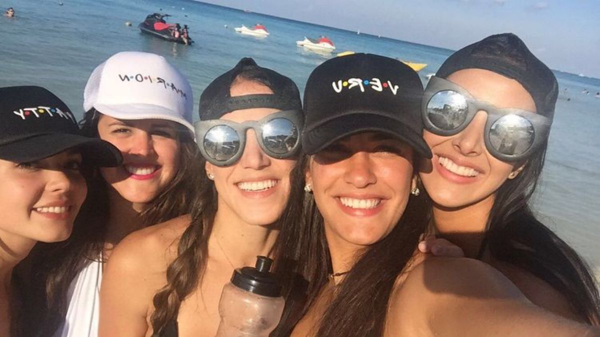 Despedida de soltera de Marion Villarroel (gorra blanca) en Playa del Carmen, México, en 2017