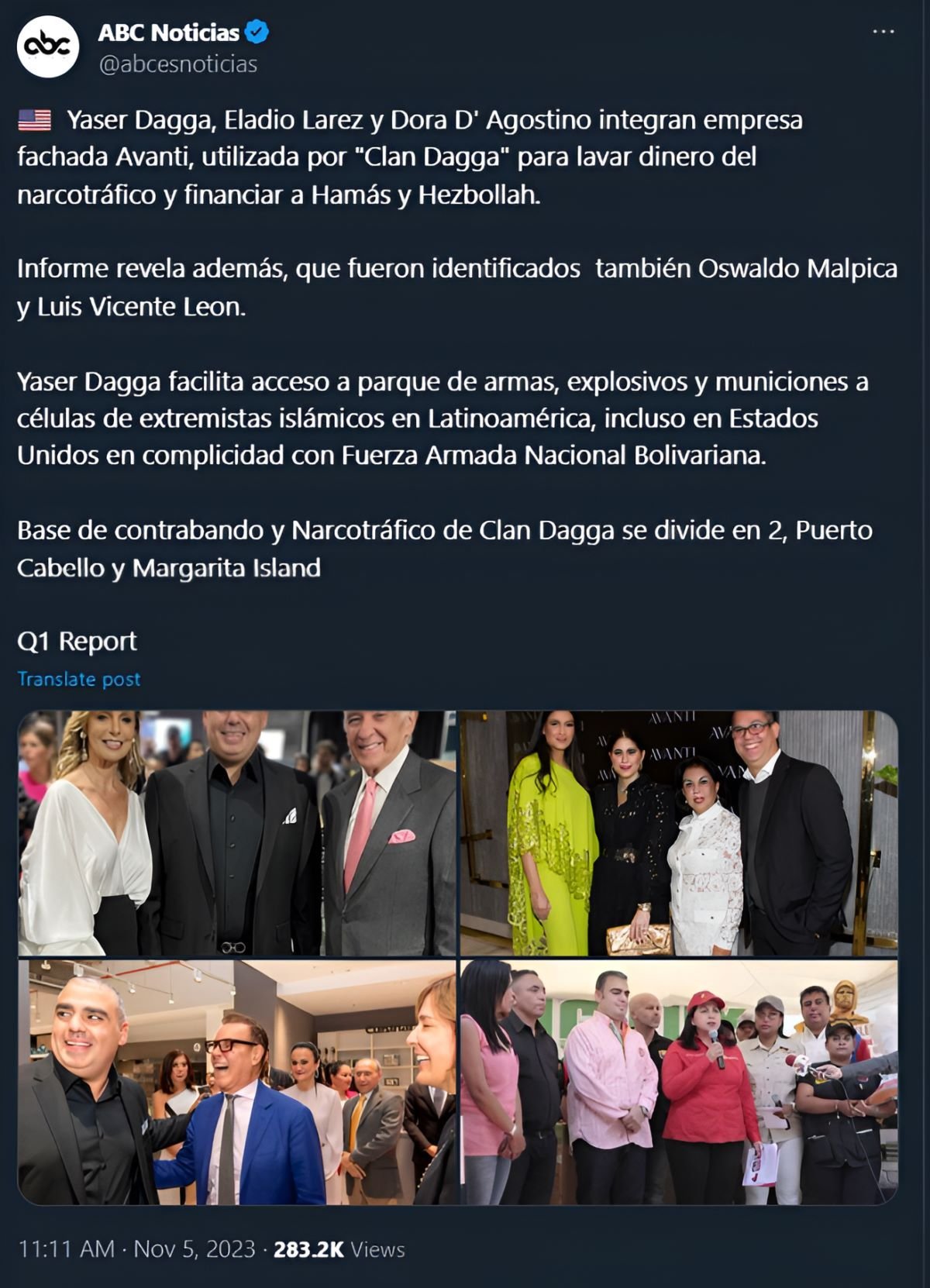 Según la denuncia, la base de contrabando y narcotráfico del Clan Dagga se divide en dos: Puerto Cabello y la isla de Margarita. @abcesnoticias cuestionó los contactos de Dagga con personajes vinculados al régimen de Venezuela, como Oswaldo Malpica y Luis Vicente León. Este último es el presidente de la encuestadora Datanálisis, que ha sido cuestionada en los últimos años por su supuesta parcialidad a favor del régimen.